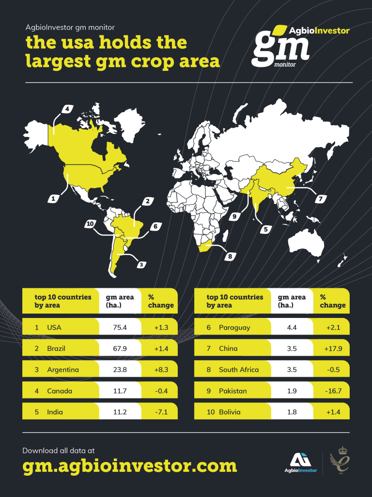 Explore the latest updates on GM crop cultivation — including planted area, share of total area, production, trade, and approval status.
